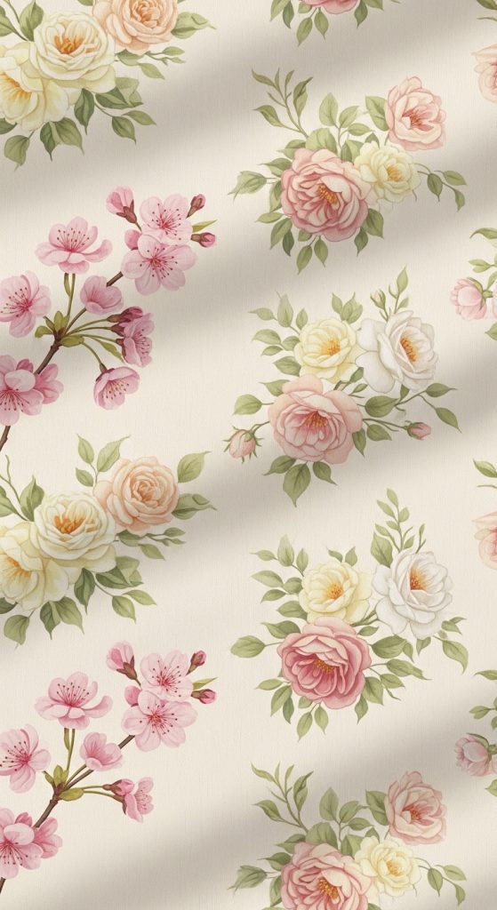 Nothing says spring quite like flowers. Floral wallpapers are timeless and endlessly versatile, ranging from delicate pastel blossoms to bold oversized prints. Soft roses, cherry blossoms, and wildflowers can create a calm, romantic atmosphere, while larger, colorful florals make a strong visual impact.