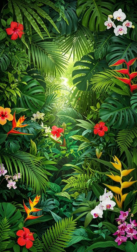 Spring in some regions leans toward a tropical feel, and you can reflect that in your wallpaper. Bright greens, exotic flowers, and lush jungle prints can energize a room and create a vacation-like atmosphere.