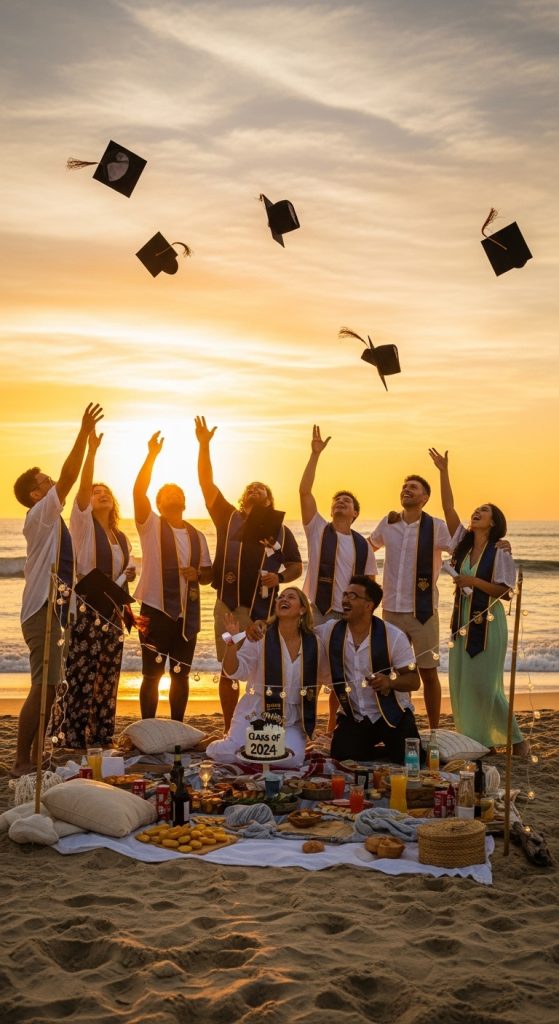 A beach offers a naturally beautiful and calming environment for a graduation celebration. The sound of waves crashing, the feel of sand beneath your feet, and the endless horizon create a serene yet joyful atmosphere. Whether you host a daytime picnic or an evening bonfire, the beach provides flexibility for both relaxed and lively celebrations. Watching the sunset while celebrating your achievements adds a magical touch that’s hard to replicate elsewhere.