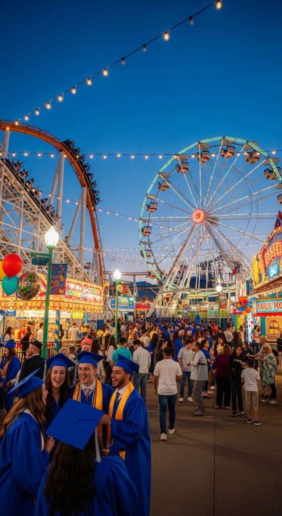 For a fun and energetic celebration, an amusement park is a fantastic option. Instead of a traditional party, you can spend the day enjoying thrilling rides, games, and entertainment with friends. It’s a great way to celebrate your achievement in a lively and carefree way. The excitement and laughter shared throughout the day create unforgettable memories that perfectly mark the end of your academic journey.