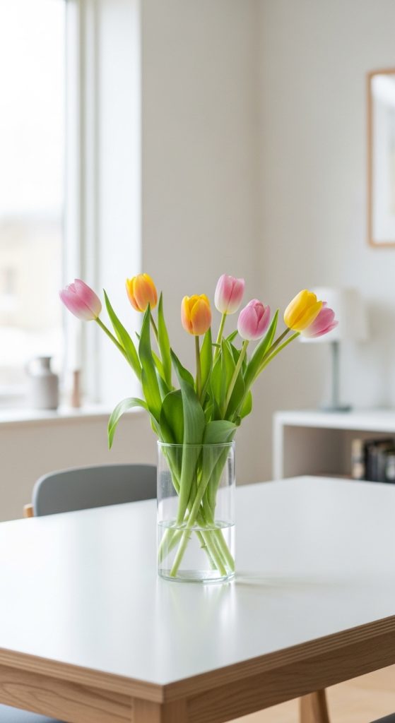 Tulips are simple yet elegant flowers that symbolize comfort, love, and new beginnings. They come in a variety of colors, including red, pink, yellow, and white, each carrying its own meaning. A tulip arrangement can add a clean and modern look to a home. Their minimalistic beauty makes them a favorite for contemporary interior styles.