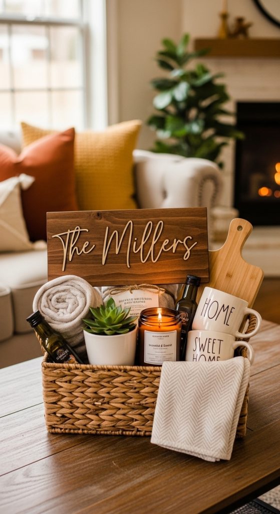 New homeowners often need kitchen basics. A kitchen essentials basket can include items like wooden spoons, olive oil, spices, dish towels, and a cutting board. You can also add a recipe book for inspiration. This basket is both practical and thoughtful, especially for those who love cooking.
