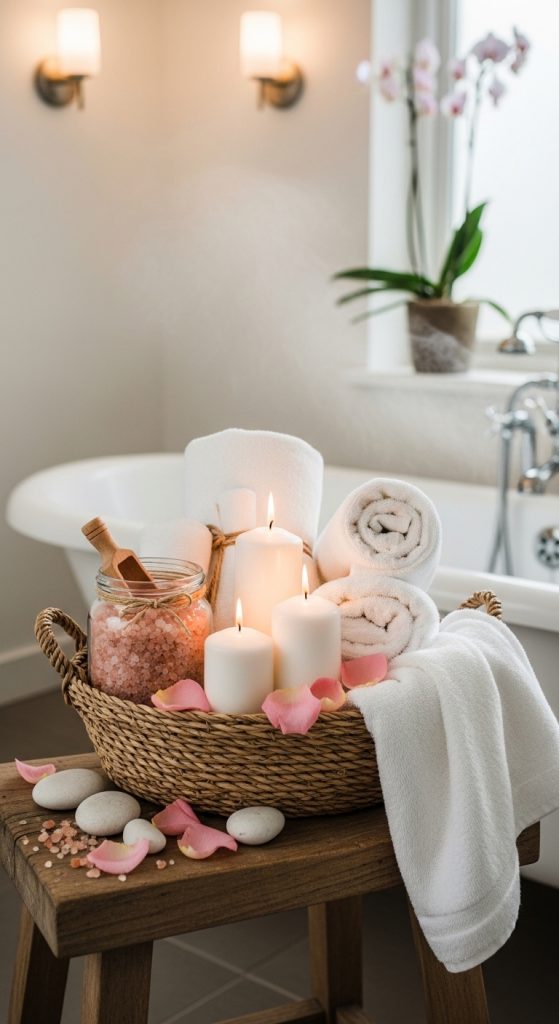 Moving can be exhausting, so a spa relaxation basket is a perfect way to encourage self-care. Include bath salts, essential oils, face masks, lotions, and a soft towel. Choose soothing scents like lavender or eucalyptus to create a calming spa-like experience at home.
