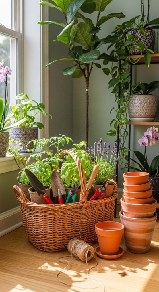 If the new homeowner has outdoor space or enjoys plants, a gardening basket is a unique idea. Include small potted plants, seeds, gardening gloves, and tools. You can also add decorative pots for indoor plants. This gift symbolizes growth and new beginnings.