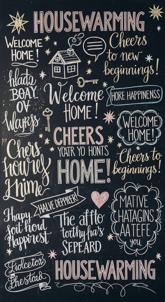 A chalkboard backdrop allows for creativity and personalization. Write welcoming messages, doodles, or fun quotes like “New Home, New Memories.” You can even let guests add their own messages, making the backdrop interactive and memorable.