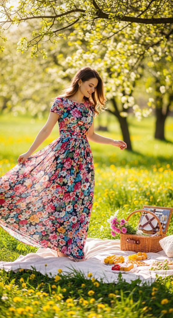 A flowing maxi dress brings comfort and elegance together. Choose lightweight fabrics like chiffon or cotton for breathability. Floral, abstract prints, or solid earthy tones all work beautifully. This outfit is ideal for outdoor events or family picnics where ease of movement is important.