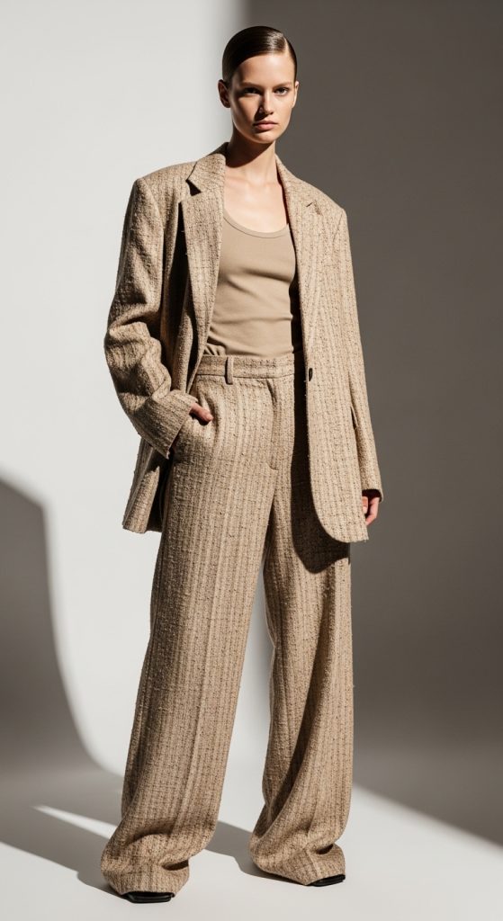 A monochrome outfit in shades like all-white, beige, or soft pink can look incredibly chic. Wearing a single color from head to toe creates a polished and modern aesthetic. Mix textures—such as linen trousers with a silk top—to add depth to the look.