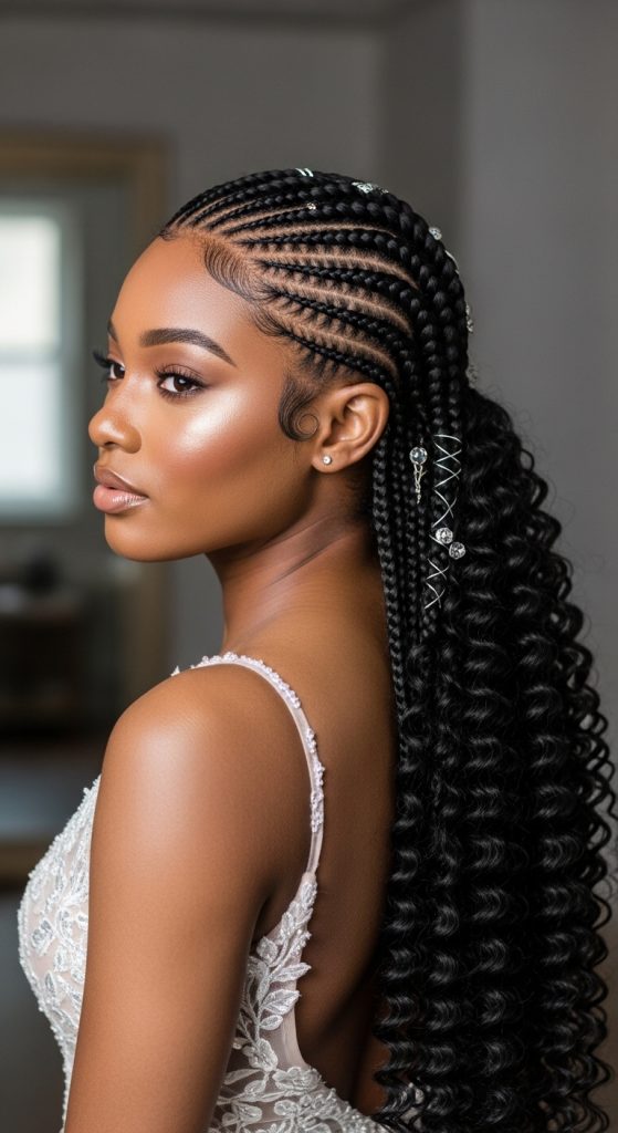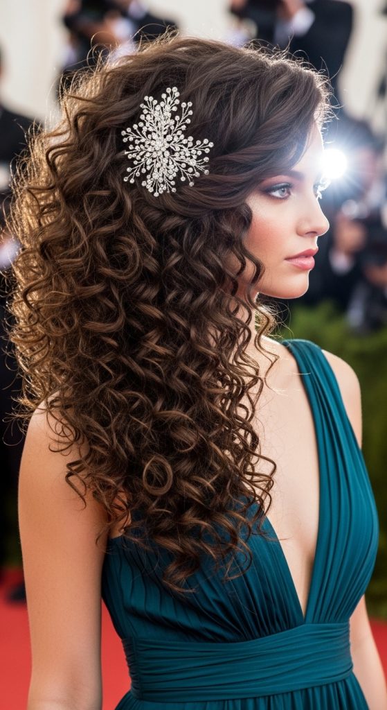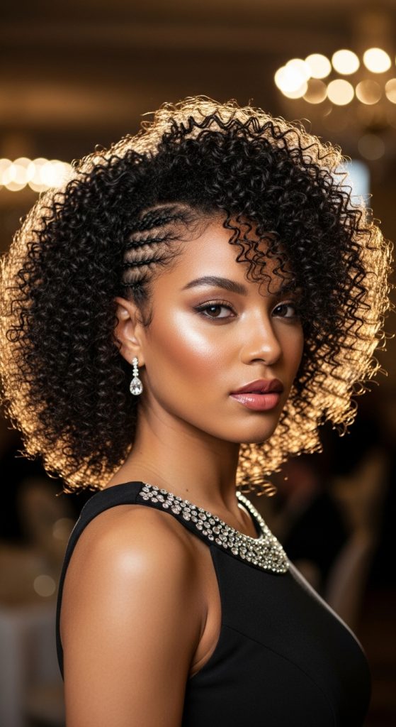 Side-swept styles are effortlessly glamorous. By pinning one side of your coily hair back, you create a dramatic cascade of curls over one shoulder. This asymmetry pairs beautifully with one-shoulder dresses or deep necklines. A decorative clip or comb adds a red-carpet finish.
