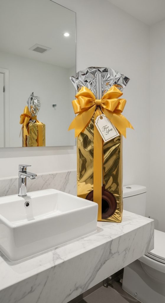 Wrap a brand-new plunger like it is an expensive luxury item. Use shiny paper, ribbon, and dramatic presentation. Hand it over proudly as if it were a priceless treasure.