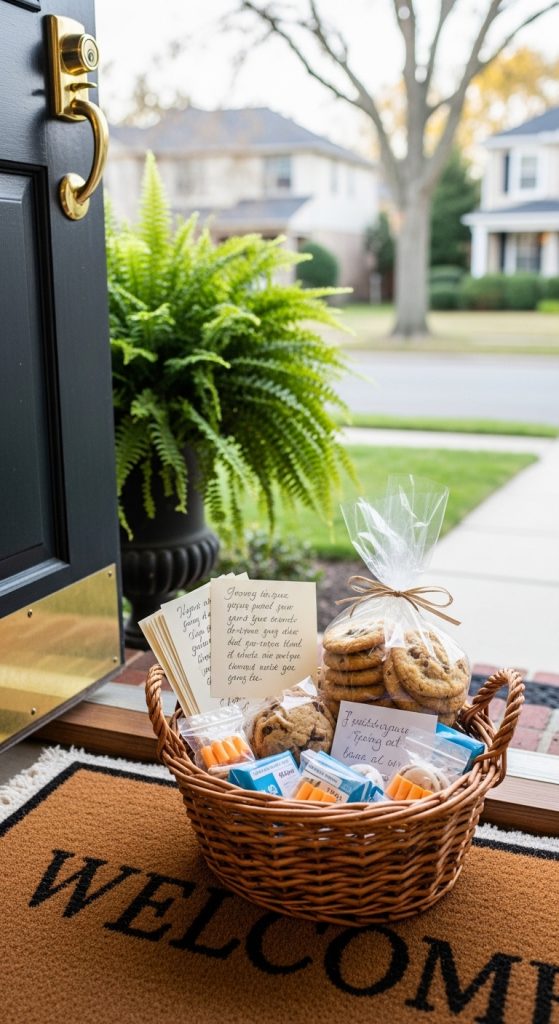 Moving means meeting neighbors, which can sometimes be awkward. Put together a basket containing earplugs, cookies, apology notes, and a label saying “Use after loud parties.” This lighthearted gift jokes about first impressions while also being charming and thoughtful.