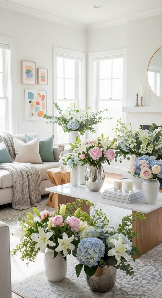 Fresh flowers are one of the most powerful ways to uplift energy in a home. They symbolize life, growth, and purity. Placing flowers like jasmine, roses, lilies, or marigolds in living rooms, dining areas, or entryways can instantly brighten the atmosphere. You can use glass vases, ceramic pots, or floating flower bowls for decorative variety. Regularly changing the flowers ensures that the energy remains fresh and vibrant, making your home feel alive and welcoming.
