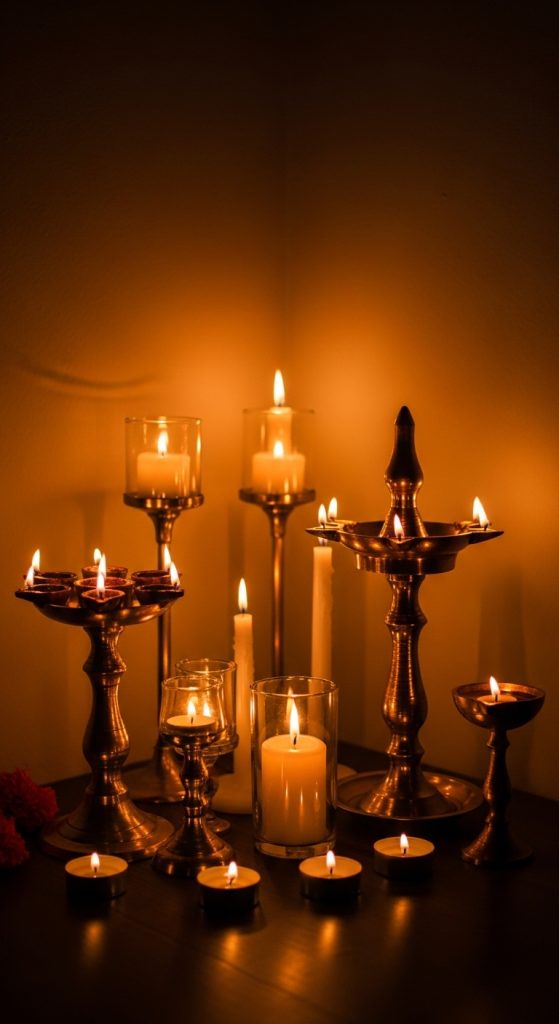 Lighting candles or traditional oil lamps (diyas) is a timeless house blessing practice. The soft glow of fire symbolizes purification, hope, and spiritual clarity. Creating a dedicated corner with candles, scented wax lights, or diyas can bring a sense of calm to your home. You can place them near mirrors, windows, or prayer spaces to enhance their glow. Adding decorative candle holders or brass diyas enhances both aesthetic and spiritual value.