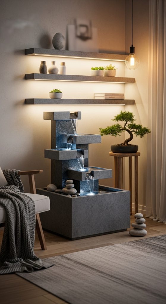 Water symbolizes flow, purity, and prosperity. Adding a small indoor fountain or decorative water bowl can enhance the calming energy of a space. The sound of flowing water creates a peaceful atmosphere, reducing stress and promoting relaxation. You can place fountains in living rooms or entry areas to maintain a continuous flow of positive energy. Ensure the water is clean and flowing to maintain its symbolic effectiveness.