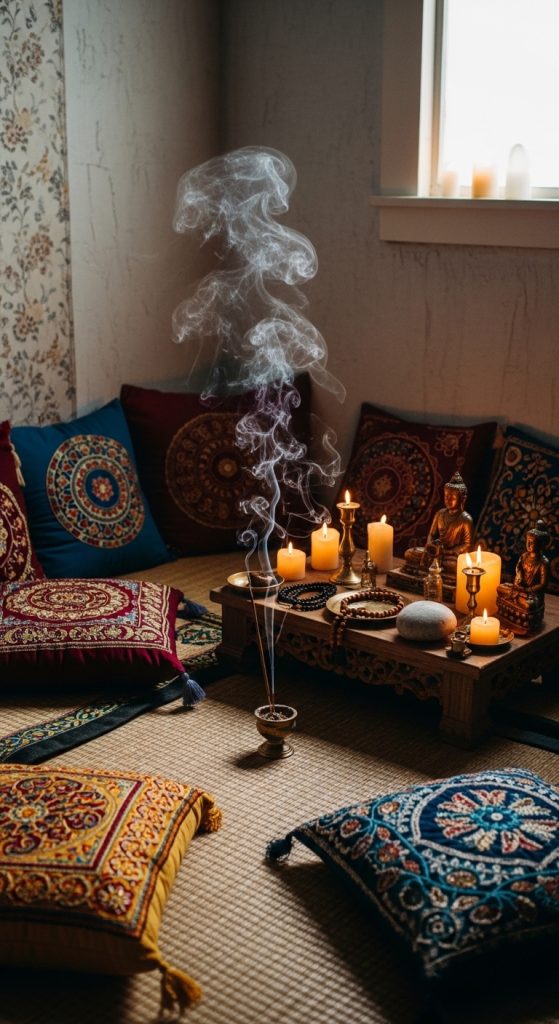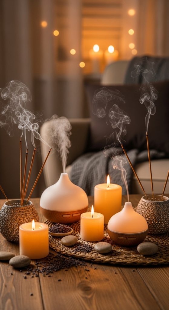 Fragrance has a strong impact on mood and energy. Using incense sticks, essential oil diffusers, or scented candles can instantly transform the ambiance of your home. Scents like sandalwood, lavender, jasmine, and rose are commonly used in blessing rituals. You can also decorate with stylish incense holders or aroma lamps to combine beauty with function. A pleasant fragrance creates a soothing and uplifting environment for both residents and guests.