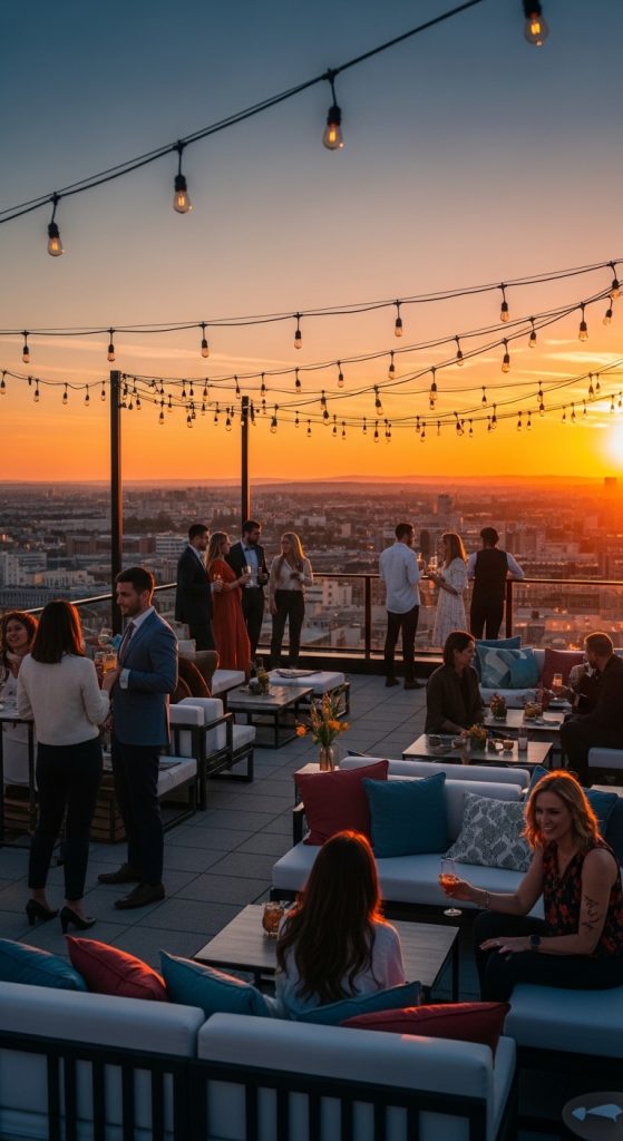 If you have access to a rooftop, this idea is perfect for evening gatherings. A rooftop open house offers stunning views and a breezy atmosphere.
