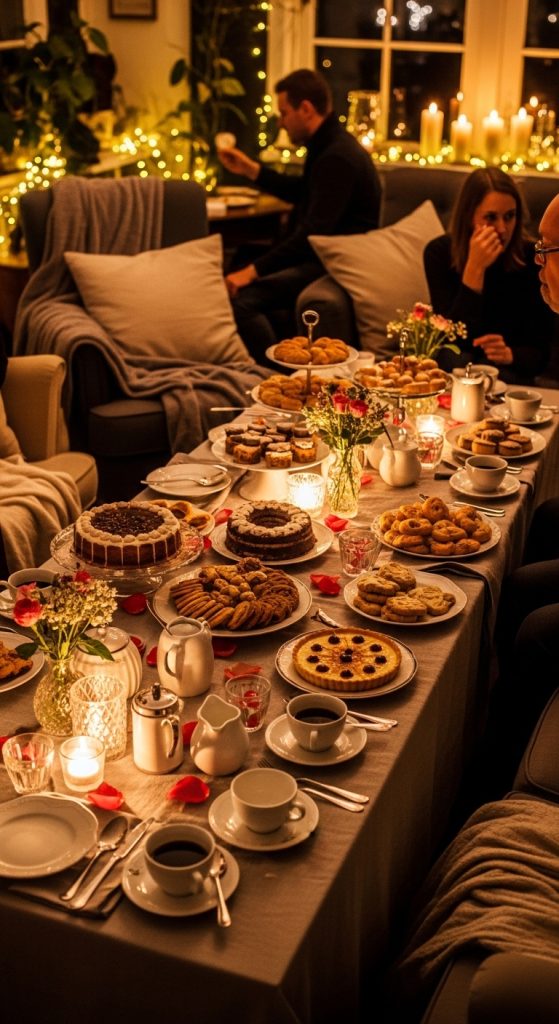 If you prefer a cozy indoor gathering, a coffee and dessert theme is ideal. Offer a variety of coffees, teas, and hot chocolate paired with cakes, cookies, pastries, and chocolates.