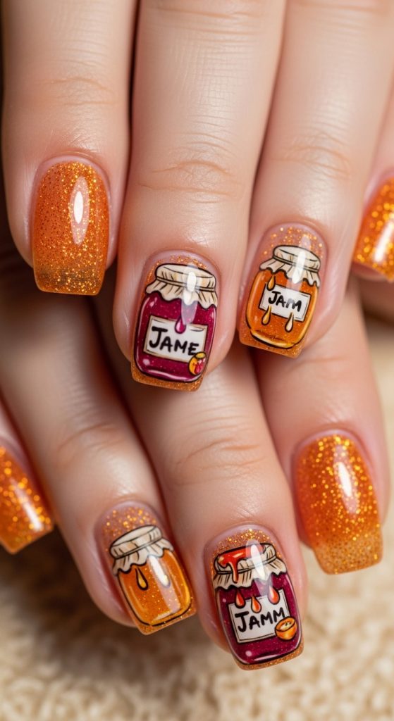 For extra charm, add tiny honey drips or a “Marmalade Lover” script on a feature nail.